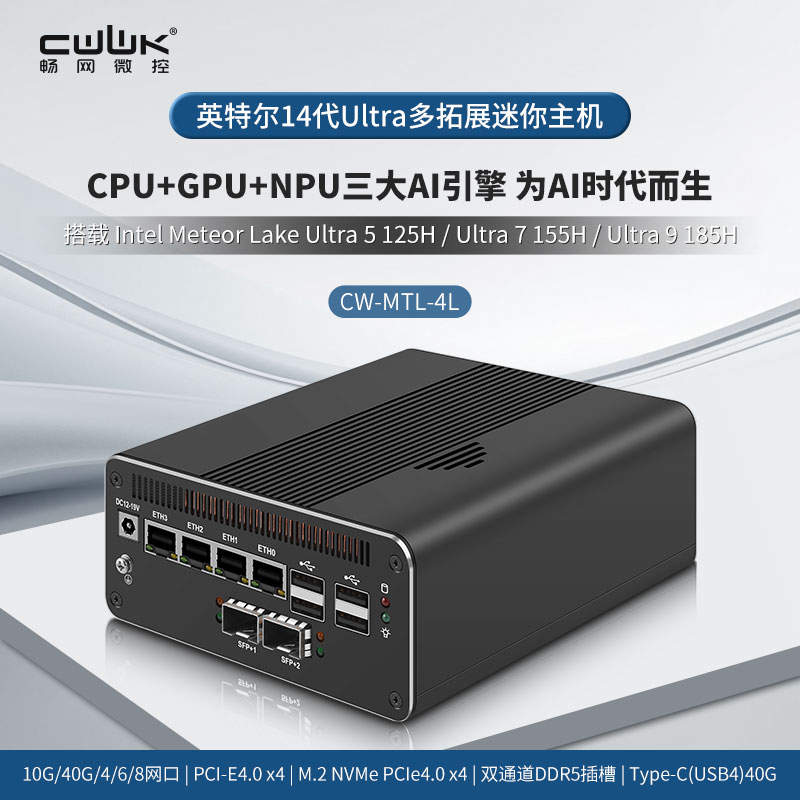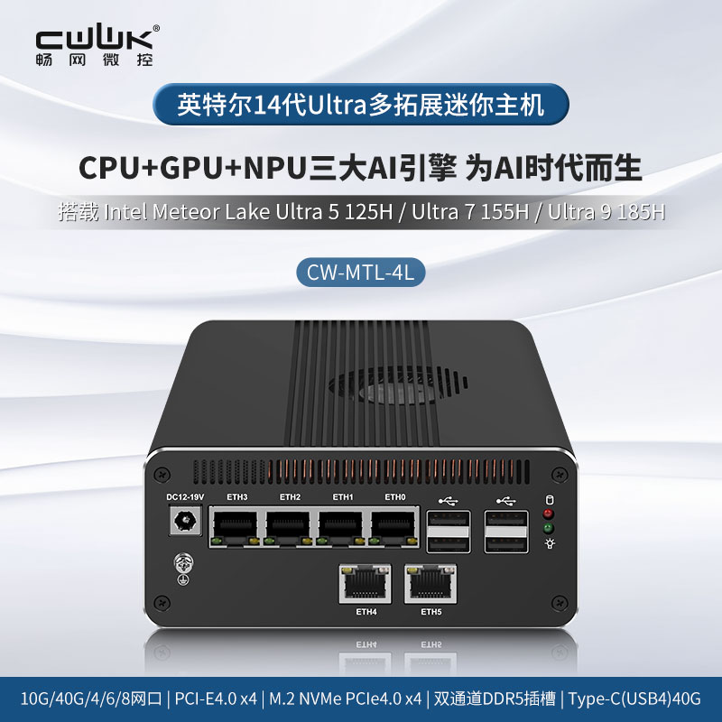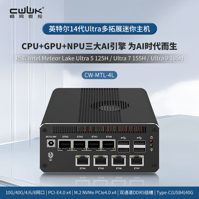 1 * M.2 WiFi | 1 * M.2 NVMe PCIe4.0 x4 | 1 * 12V-2Pin | 1 * 凤凰端子 | 1 * TPM排针 | 1 * GPIO排针 | 1 * COM排针 | 1 * SATA3.0 | 1 * 双通道SO-DIMM DDR5 | 1 * PCI-E x8插槽 | 1 * 主板电池 | 1 * USB断电跳帽 | 1 * RST/GPIO按键跳帽 | 1 * F_PANEL排针 | 1 * SATA供电座子 | 2 * 系统风扇供电座 | 1 * CPU风扇供电座 | 4 * 网卡芯片 | 1 * 14代CPU处理 |