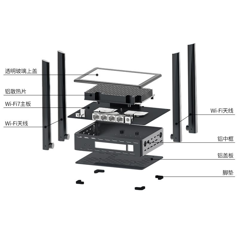 | 5G Wi-Fi | 2x2 支持IEEE802.11be协议 160MHz理论最高速率2882Mbps |