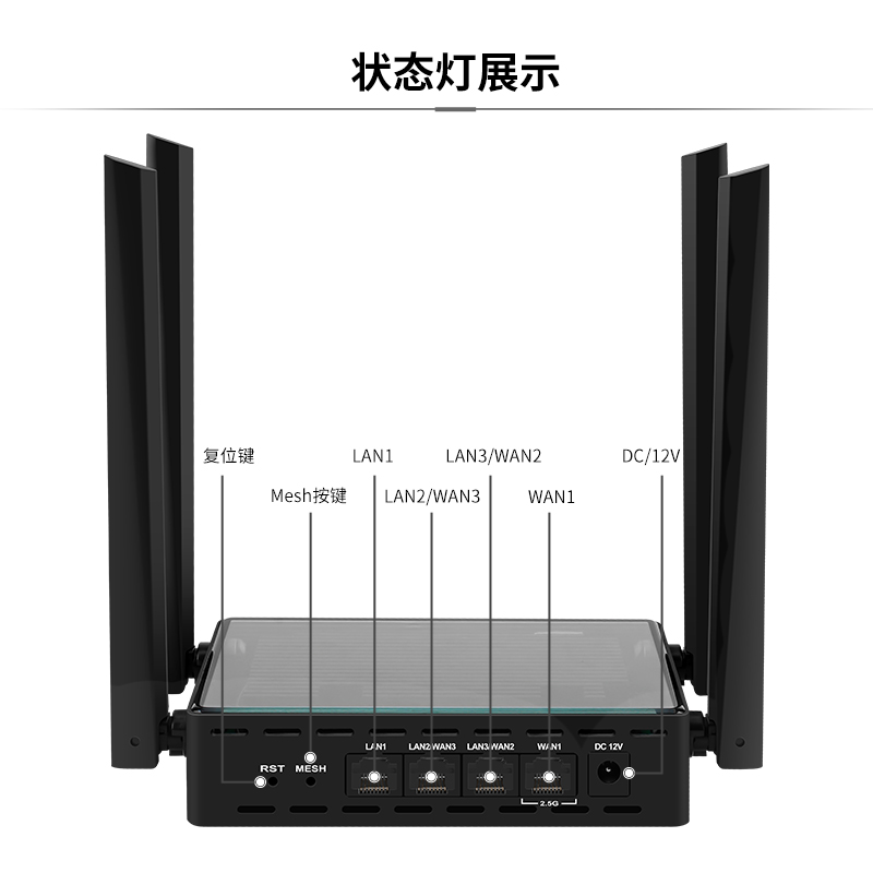 | LED指示灯 | 6个 PWR/INT/LAN/2.4G/5G/Mesh |