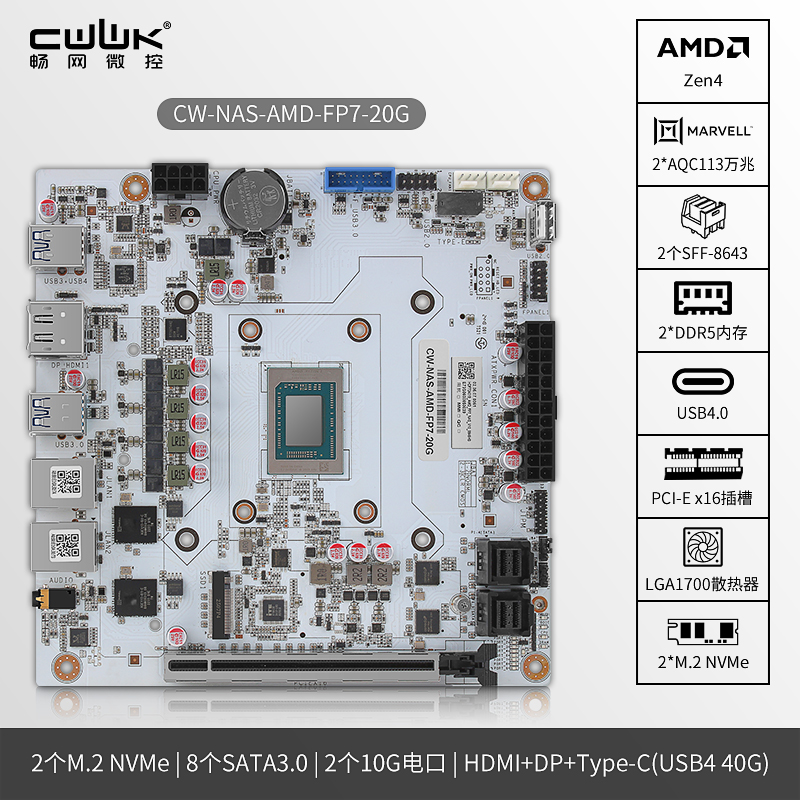 CW-NAS-AMD-FP7-20G 双万兆8盘位NAS主板
