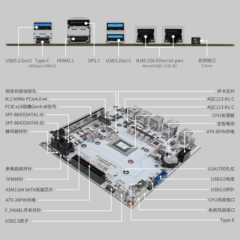 2 个RJ45万兆电口(AQC113-B1-C 速率自适应1G/2.5G/5G/10G)