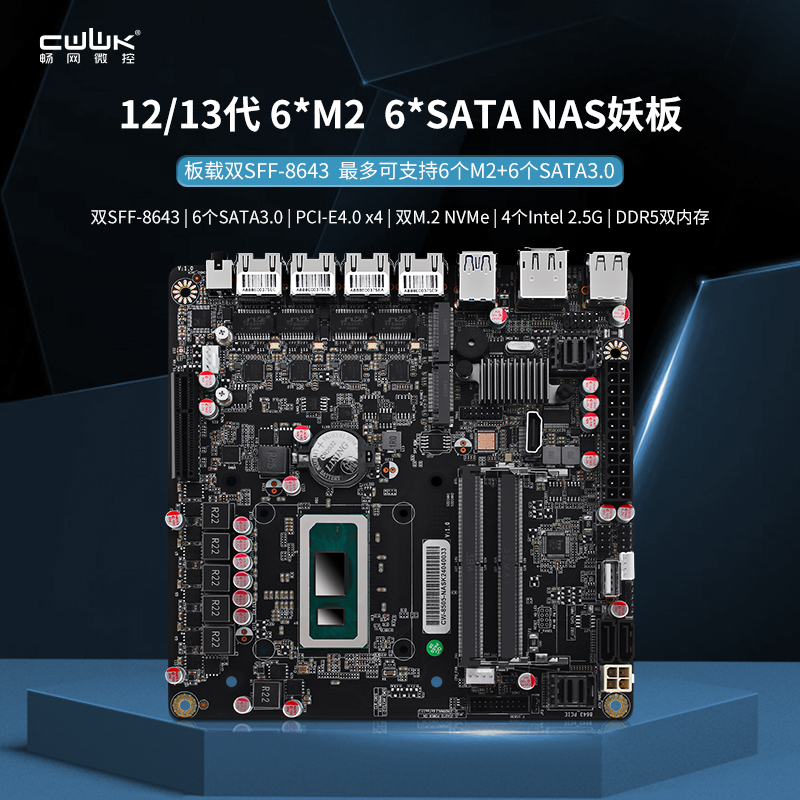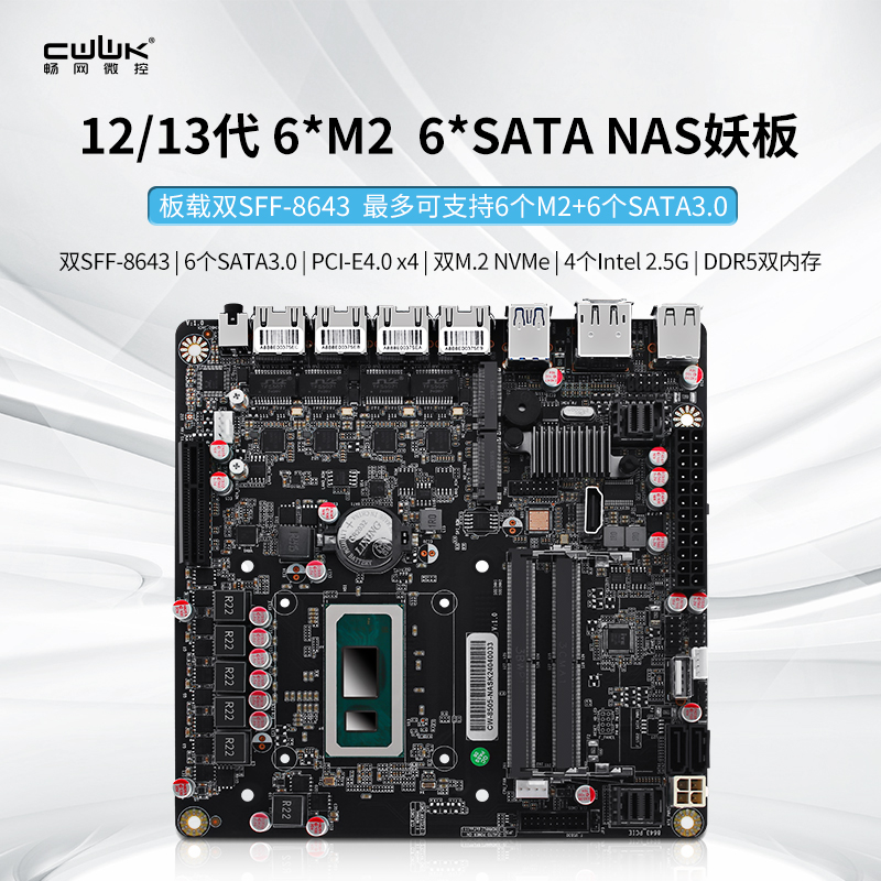 - 2 * M.2 NVMe2280插槽 M.2插槽1(PCIe4.0 x4) M.2插槽2(PCIe3.0 x1) - 1 * SFF-8643 PCIe座子 支持拓展4个M.2 NVMe - 2 * 板载SATA3.0座子 - 1 * SFF-8643 SATA座子支持出来4个SATA3.0 |